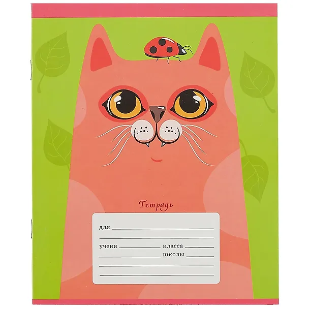 Тетрадь школьная формата А5. Обложка из мелованного картона. Блок сделан из офсетной бумаги плотностью 60 г/кв.м и состоит из 18 листов в линию с полями. Креплением тетради является скрепка.