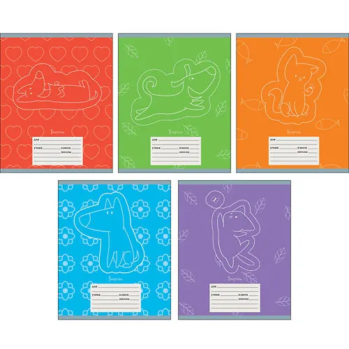 В младших классах предпочтительны однотонные тетради. Мы создали большое количество однотонных дизайнов с аккуратными неяркими дополнительными элементами (тени животных, аккуратные собачки или совы, орнаменты и др.). Они не отвлекают ребенка от учебы, но при этом украшают его школьные будни.