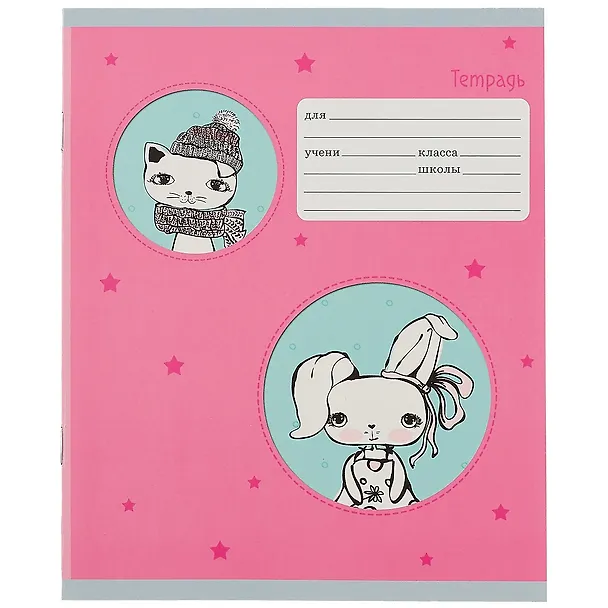 Тетрадь школьная формата А5. Обложка из мелованного картона. Блок сделан из офсетной бумаги плотностью 60 г/кв.м и состоит из 12 листов в линию с полями. Креплением тетради является скрепка.