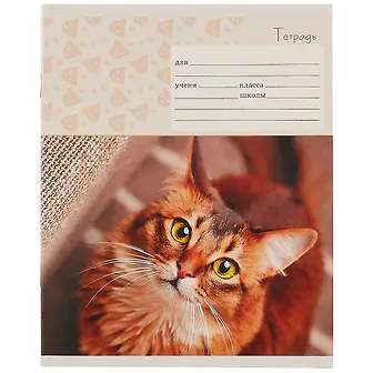 Тетрадь школьная формата А5. Обложка из мелованного картона. Блок сделан из офсетной бумаги плотностью 60 г/кв.м и состоит из 24 листов в линию с полями. Креплением тетради является скрепка.