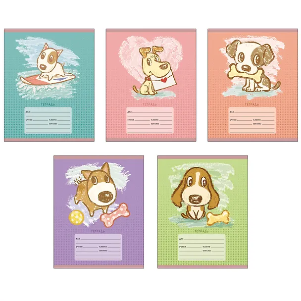 Тетрадь школьная формата А5. Обложка из мелованного картона. Блок сделан из офсетной бумаги плотностью 60 г/кв.м и состоит из 12 листов в линию с полями. Креплением тетради является скрепка.