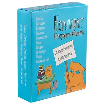 Один из лучших наборов которые я покупала! Тетради имеют очень плотную обложку и не рвутся! Листы светлые и не рвутся! Очень прикольный принт, особенно миленькие котики на обложке. У всех тетрадей индивидуальные принты. В десять штук для каждого предмета! Цена прекрасная.
