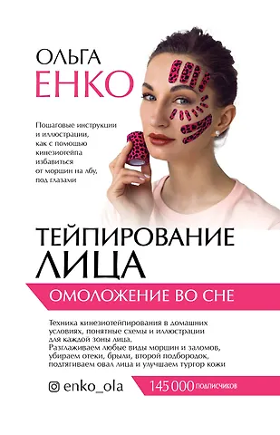 Современные методики омоложения и сохранения естественной красоты постепенно вытесняют еще недавно популярные агрессивные методы: инъекции и глубокие пилинги. В моде бережное отношение к коже, безопасность, максимальная физиологичность в воздействии на нее. Кинезиотейпирование, которому посвящена книга Ольги Енко «Тейпирование лица. Омоложение во сне», один из эффективных способов естественного омоложения в домашних условиях и идеально отвечающих современным требованиям. Метод заключается в том, что эластичные ленты накладывают на определенную зону лица, шеи и области декольте по определенным схемам, и результат уже заметен через 4-6 часов. Методику можно использовать на ночь. Вы спите или о