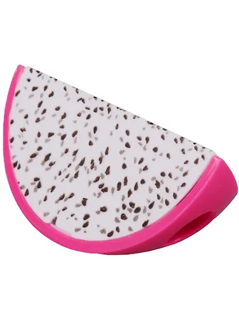 Точилка изготовлена из лёгкого цветного пластика, качество материала неплохое, нет острых выступов или каких-либо неровностей. Единственное, что не понравилось, так это рисунок, который изображает сердцевину фрукта – оказалось, это просто бумага, приклеенная на точилку с двух сторон. Издали такая долька смотрится прикольно, а вот вблизи не очень. Но со своей непосредственной задачей справляется вполне прилично, карандаши точит, грифель не ломает. Размер оптимальный, можно и дома держать, и носить с собой на учёбу.