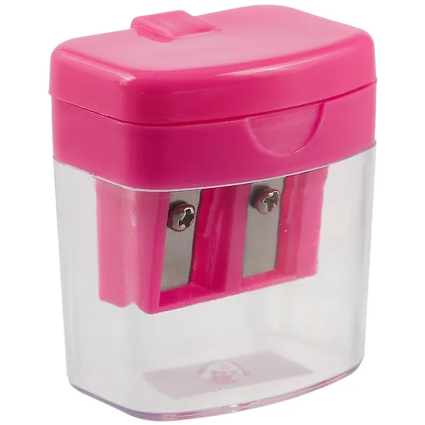 Прикольная, именно какая-то прикольная точилка с вставленным контейнером для удобства собирания и выброса стружки. Выполнена из хорошего пластика. Сам контейнер прозрачный и всегда видно степень его наполнения. В точилке два отверстия под разной толщины карандашики. Сверху прикрыта аккуратненькой крышечкой, предотвращающей высыпание содержимого ёмкости наружу. Весьма практичная штучка, я вам скажу! Все составляющие точилки держатся крепко, ничего не болтается туда-сюда, добротно сложено. Места много не занимает, поместится и в пенале, и в отделении для канцелярии рюкзака/сумки.