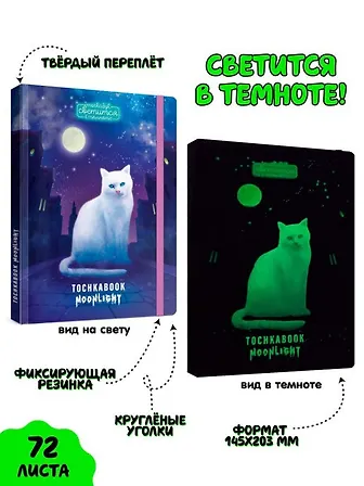 Новые светящиеся в темноте точкабуки удивят даже самых искушённых любителей канцелярии. Эти блокноты не только удобны и приятны в использовании благодаря таким привычным для всех точкабуков закруглённым уголкам, фиксирующей резинке и линовке листов в точку. Эти точкабуки отличаются от остальных тем, что светятся в темноте! Стоит несколько минут подержать блокнот на свету, а затем взглянуть на него в неосвещённом помещении, и вы увидите исходящее от него свечение! Этот эффект сделает использование точкабука ещё более приятным и захватывающим.