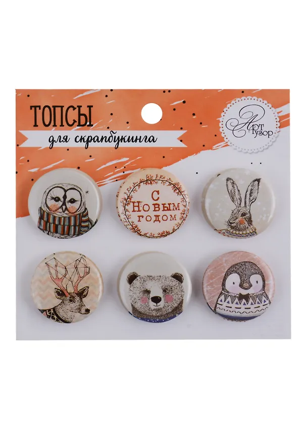 Декор с новогодним дизайном подойдет для оформления любых скрап-объектов: блокнотов, тетрадей, фоторамок, альбомов, подарков. Топсы прекрасно сочетаются с другими элементами.