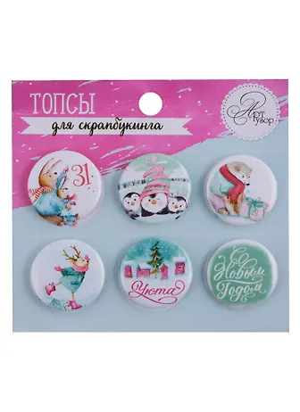 Декор с новогодним дизайном подойдет для оформления любых скрап-объектов: блокнотов, тетрадей, фоторамок, альбомов, подарков. Топсы прекрасно сочетаются с другими элементами.