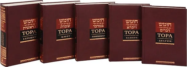 Тора (Пятикнижие Моисеево) с переводом на русский язык с комментарием рабби Шломо Ицхаки (Раши; 1040 - 1105) с аннотациями и примечаниями. В 5 томах.