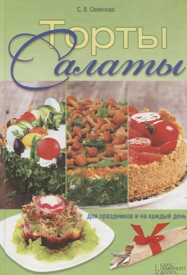 Слоеные торты-салаты никого не оставят равнодушным! Они не только очень вкусны, но и выглядят оригинально и празднично! Приготовить их можно из мяса, рыбы, грибов, овощей, фруктов и ягод, подобрав рецепт как для особо торжественного дня, так и для обычного семейного обеда. К тому же они очень просты: уложите продукты слоями, залейте ароматным маслом, майонезом или салатной заправкой - и блюдо готово! А подробное описание процесса приготовления, яркие цветные фото, советы по украшению помогут в работе и вдохновят на создание кулинарных шедевров. Блюдо, сделанное по рецептам книги, станет украшением вашего стола!