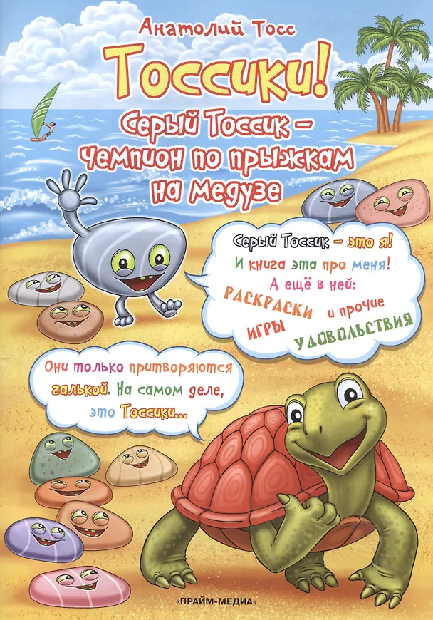 Вот так начинаются приключения Серого Тоссика на коралловом рифе... Серый Тоссик всю жизнь пролежал на пляже и никогда никуда не ходил. Потому что у него не было ног. Но на коралловом рифе у него появились не только две ноги, но еще и одна рука. Вот только бы знать, что с ними со всеми делать. Можно конечно научиться ходить... Но может быть, лучше прыгать? Особенно когда под рукой добродушная упругая медуза.