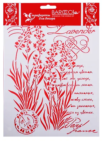 Трафарет Barocci ПВХ многоразовый Лаванда Письмо 20х25 Л-143