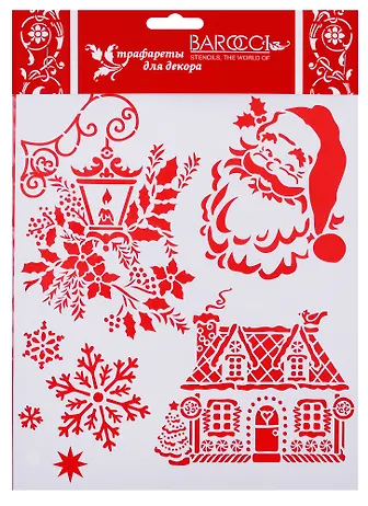 Используйте трафареты для декора деревянных, стеклянных, керамических и других предметов, а так же для декора текстиля и даже тортов и салатов! Создавайте рисунки и объемные изображения на стенах и шкатулках, на мебели и елочных украшения, на всем, к чему только можно приложить трафарет.