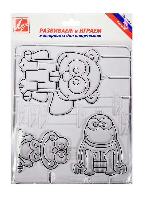 Трафарет для рис. красками по стеклу Бобер и компания (25С 1568-08) (шаблоны(бобер/черепаха/лягушонок) для витражной краски) (как подвески/как фигурки на подставке) (3+) (упаковка) (Луч)