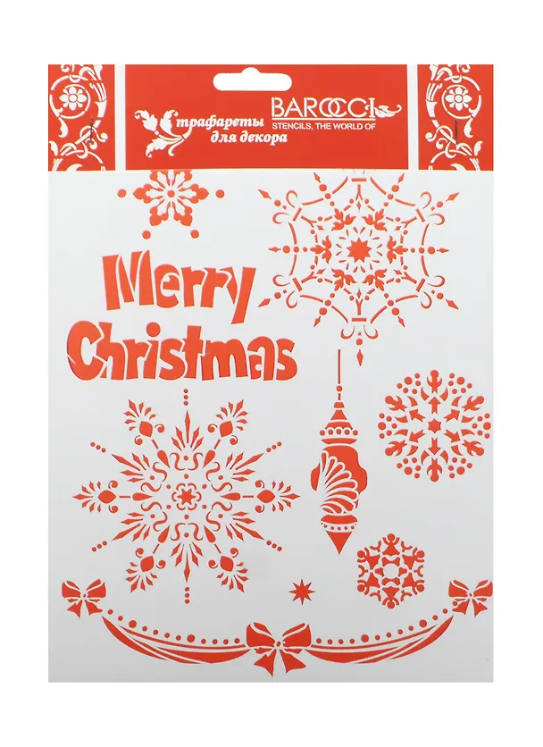 Трафарет пластиковый многоразовый Снежинки (НГ-026) (25х20см) (упаковка)