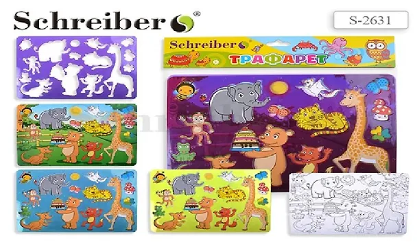Трафарет отличного качества, занимает ребенка надолго. Фигурок зверей много,можно выбрать любимого. Детали есть как крупные,так и мелкие. Трафарет расположен на красочной подложке,на которой расположены яркие картинки с животными. На другой стороне этой подложки чёрно-белые изображение,которое можно раскрасить.