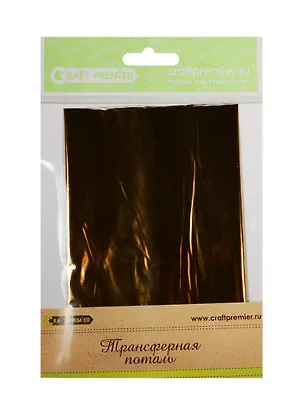 Трансферная поталь создает эффект золочения и идеально подходит для декорирования любой твердой поверхности: бумага, картон, дерево, металл, стекло и керамика. Размер листа: 1500 см2 Применение: В зависимости от художественной задумки, специальный клей для трансферной потали наносится либо по контуру, либо покрывает поверхность будущего рисунка. В любом случае клей придаст изображению объем. Перед работой с поталью он должен полностью высохнуть и стать прозрачным. После высыхания клея прикладываем трансферную поталь изнаночной стороной вниз (она имеет матовую поверхность, а лицевая сторона – блестящую). Разглаживаем лист и резким движением снимаем пленку. Если на каких-то участках поталь не