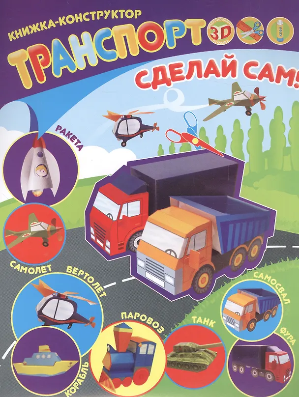 Перед Вами книжка-конструктор, которая увлечет Вашего малыша и разовьет в нем усидчивость и аккуратность. Своими руками ребенок сможет сделать модели самых разных транспортных средств, которыми можно будет украсить детскую комнату или подарить их друзьям. Вам понадобится лишь немного помочь ребенку -и вот у Вас уже есть свой собственный технический центр или конструкторское бюро! Для работы Вам потребуются ножницы, клей-карандаш А и немного терпения - нужно вырезать предложенные ^^ модели и склеить их по образцу.