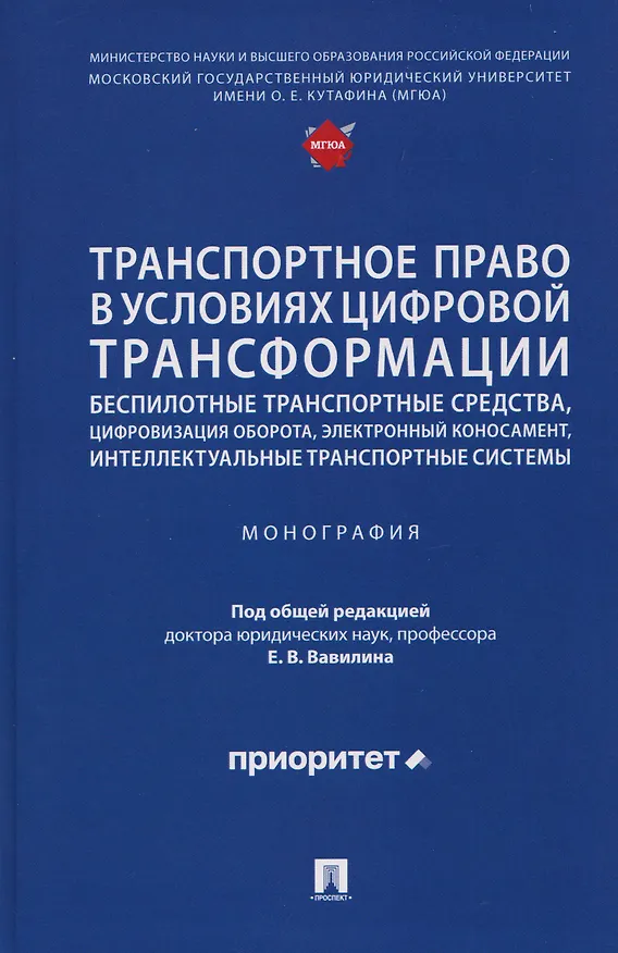 Транспортное право в условиях цифровой трансформации: беспилотные транспортные средства, цифровизация оборота, электронный коносамент, интеллектуальные транспортные системы. Монография