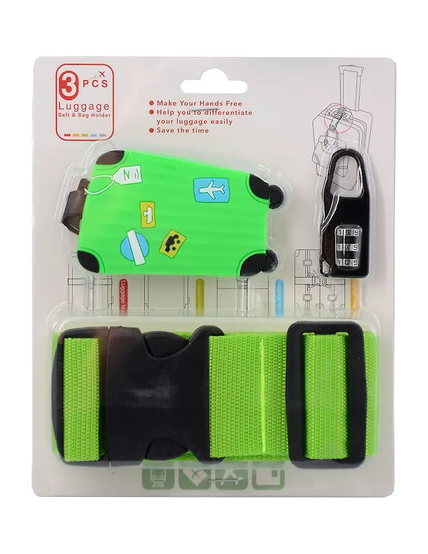 Travel набор Бирка, замочек и ремень для багажа (зеленый) (12-travel22-B3)