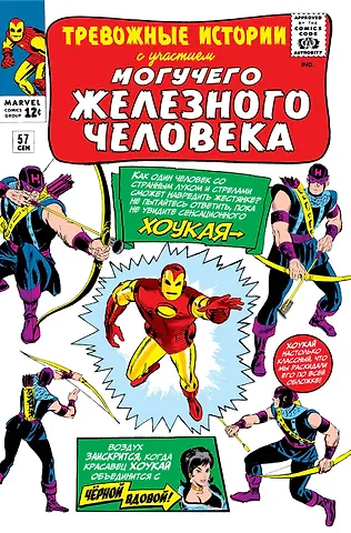 Отличный комикс, повествующий о первом появлении хоукая, в сериале железный человек 1966 года, была снята серия о нем, его любовь к чёрной вдове очень хорошо показана. Хоть его мотивация от части заключается в простой зависти но всё-же. Это классика 60ых, и если вы не любите простую рисовку и большой объем текста, то он скорее всего не придётся вам по душе.