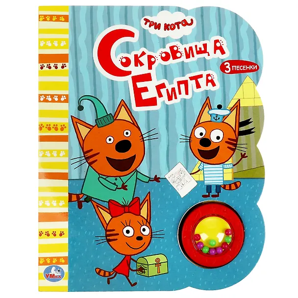 Музыкальная книга. 1 звуковая кнопка с погремушкой, 3 песенки. Три кота. Сокровища Египта, ТМ «УМка»: