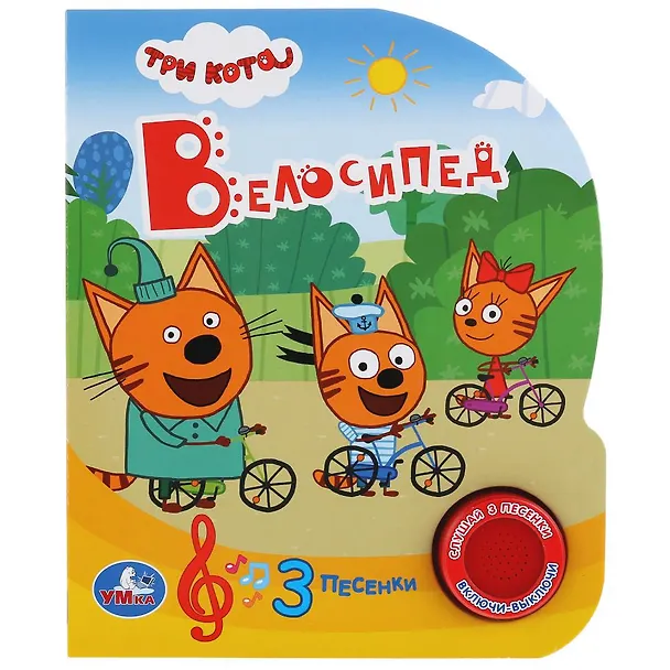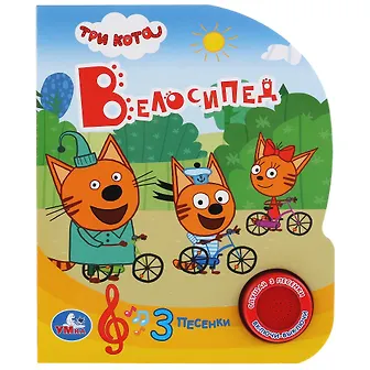 Музыкальная книжка «Три кота. Велосипед» ТМ «УМка» с красочными иллюстрациями героев мультфильма станет прекрасным подарком для ребёнка.