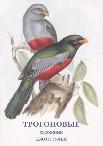 В данный набор открыток вошли иллюстрации из книги гениального орнитолога-самоучки Джона Гульда "Троноговые", которые, как и многие другие произведения этого ученого, в свое время произвели настоящий фурор в Европе. Джон Гульд создал около 3000 различных раскрашенных вручную литографий птиц и животных. По мнению многих ученых, его литографии птиц являются одними из лучших в истории. Иллюстрации из книги орнитолога-самоучки Джона Гульда "Троноговые" частично вошли в настоящий набор открыток. Трогоны - лесные обитатели, которые населяют Африку, Южную Азию и Америку.