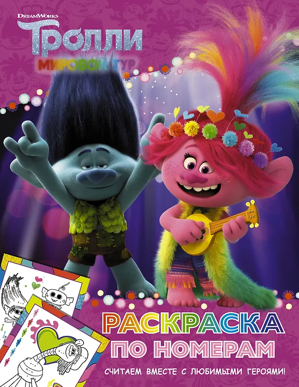 В волшебном мире Троллей существуют шесть великих музыкальных стилей: поп, фанк, техно, классика, кантри и рок — пора познакомиться с ними! Бери в руки карандаши, краски, фломастеры и отправляйся в незабываемое путешествие по Королевству! Реши примеры и подбери цвета, чтобы сделать приключения героев ещё ярче!