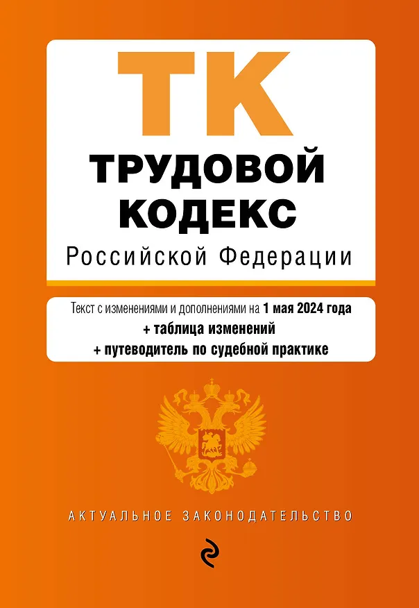 Настоящее издание содержит текст Трудового кодекса Российской Федерации с изменениями и дополнениями на 1 мая 2024 года с удобной навигацией, таблицей изменений и путеводителем по судебной практике. Если есть изменения, вступающие в силу позднее, то вместе с редакцией нормы, действующей на эту дату, приводится норма в новой редакции и указывается дата, с которой она вступает в силу.