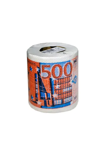 Туалетная бумага с изображением купюр достоинством 500 евро, собранная в мягкий рулон - отличный антистресс в период кризиса. Рекомендовано лучшими финансовыми консультантами мира.