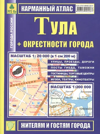 Вашему вниманию представлен карманный атлас, включающий план города масштабом 1:20000 и карту окрестностей г.Тулы масштабом 1:200000. Издание будет полезно как пешеходам, так и автомобилистам.