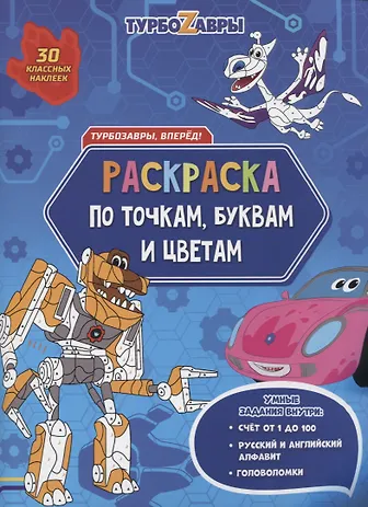 Турбозавры, вперед! Раскраска по точкам, буквам и цветам
