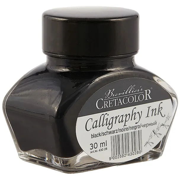 Чернила для каллиграфии, цвет - черный, 30 мл в стеклянной бутылке