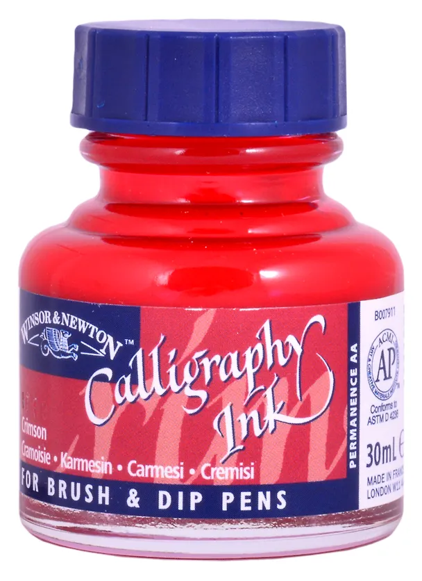 Тушь для каллиграфии от английской компании Winsor&Newton – это коллекция ярких цветов великолепного качества. Палитра состоит из 18 оттенков: 14 прозрачных и 4 непрозрачных. Все цвета светостойкие, поскольку сделаны на основе пигментов, однако водостойкими не являются. Тушь быстро высыхает, образуя полуглянцевую плёнку в случае прозрачных оттенков и матовую – в случае непрозрачных. Цветную прозрачную тушь можно наносить пером, кистью, перьевой ручкой или аэрографом. Непрозрачную тушь используют для пера и кисти. Тушь для каллиграфии от Winsor&Newton прекрасно подойдет дизайнерам, иллюстраторам и каллиграфам.