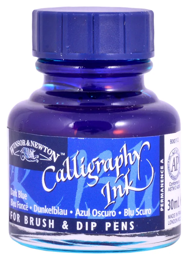 Тушь для каллиграфии 30мл темно-синяя (синяя крышка), Winsor&Newton
