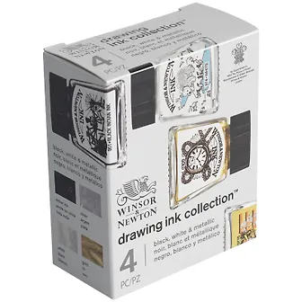 Тушь художественная 4 цв 14мл, черный, белый, золотой, серебряный, к/к, Winsor&Newton