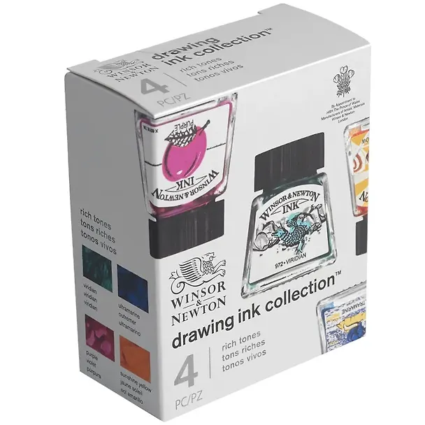 Тушь художественная 4 цв по 14мл (ультрамарин, пурпурный, желтый канареечный, виридиан), к/к, Winsor&Newton