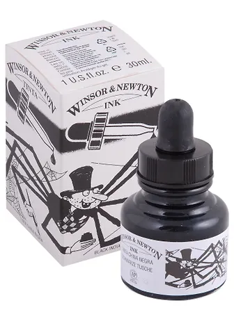 Тушь художественная Winsor&Newton, флакон с пипеткой, 30 мл, черная