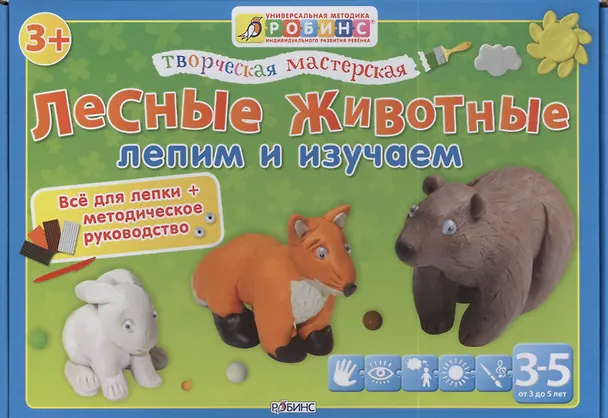 Набор "Лесные животные" всключает в себя все необходимое для лепки трех лесных животных - медведя, лисы и зайца. Методические рекомендации с пошаговыми инструкциями и мастер-классами помогут вашему малышу слепить этих животных из пластилина. Лепка из пластилина развивает внимание, мышление и воображение, а также мелкую моторику вашего ребенка.