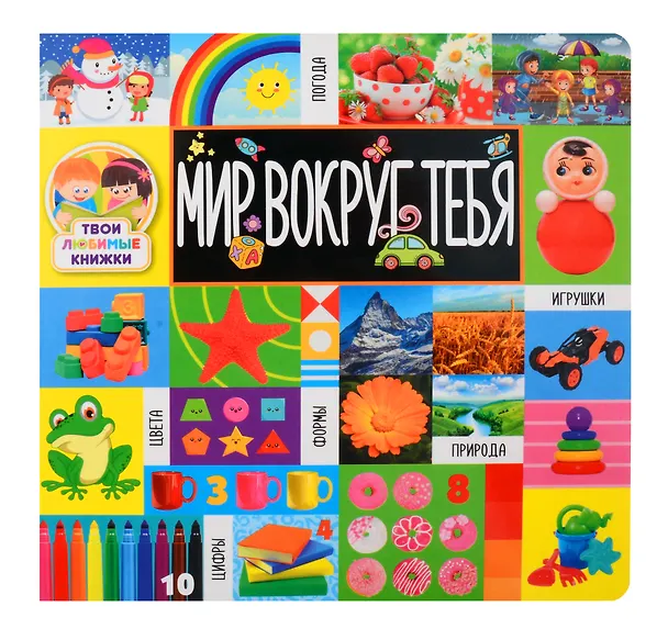 С помощью этой книги с яркими иллюстрациями ваш малыш ближе познакомится с окружающим его миром и пополнит свой словарный запас. Начиная со знакомых игрушек, ребёнок сможет узнать, например, о цветах и деревьях, горах и реках, познакомится с понятием погоды и временами года, научится различать цвета и формы, считать до 10. Красочные книги с реалистичными фотографиями и яркими картинками из серии «Твои любимые книжки» помогут развитию вашего малыша. Для безопасности ребёнка они изготовлены из плотного картона с закруглёнными уголками. Поэтому они являются идеальными первыми книгами для малышей.