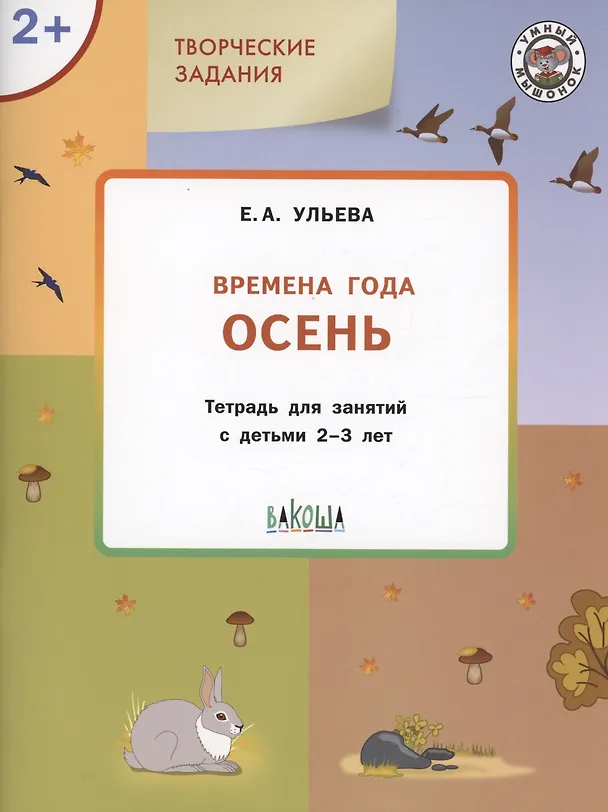 Это моя любовь. Постепенно изучаем многие осенние подтемы, в книге есть рассказ про мышонка на каждой теме, задание с красками и пластилином, есть подсказки - как работать с тетрадями и даже видеоинструкция по выполнению творческой работы. Игры подвижные и пальчиковые. Все по теме осень. Красивые картинки на плотной бумаге позволяют получить на выходе очень достойную творческую работу для ребёнка 2 лет.