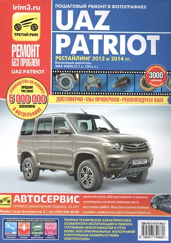 Руководство по ремонту УАЗ Patriot рейсталинг 2012г и 2014г Б(2, 7л 128л. с. ЗМЗ-40905) цв. в фото. Серия "РЕМОН"