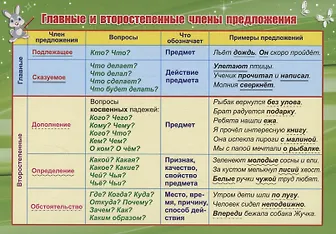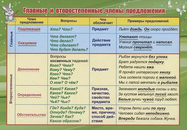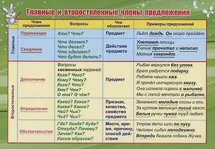 Учебный плакат. Главные и второстепенные члены предложения (Формат А5)