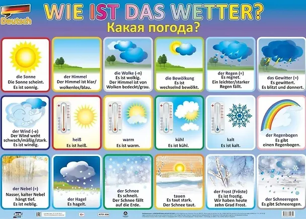 Учебный плакат . Немецкий язык. Какая погода? (Формат А2)