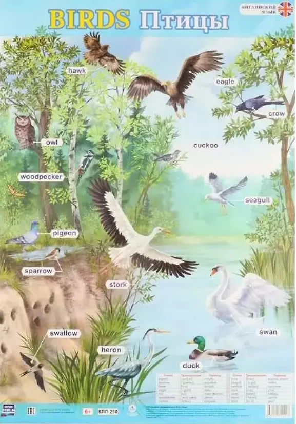 Учебный плакат. Английский язык. Birds. Птицы (Формат А2)