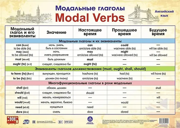 Учебный плакат. Английский язык. Модальные глаголы (Формат А2)