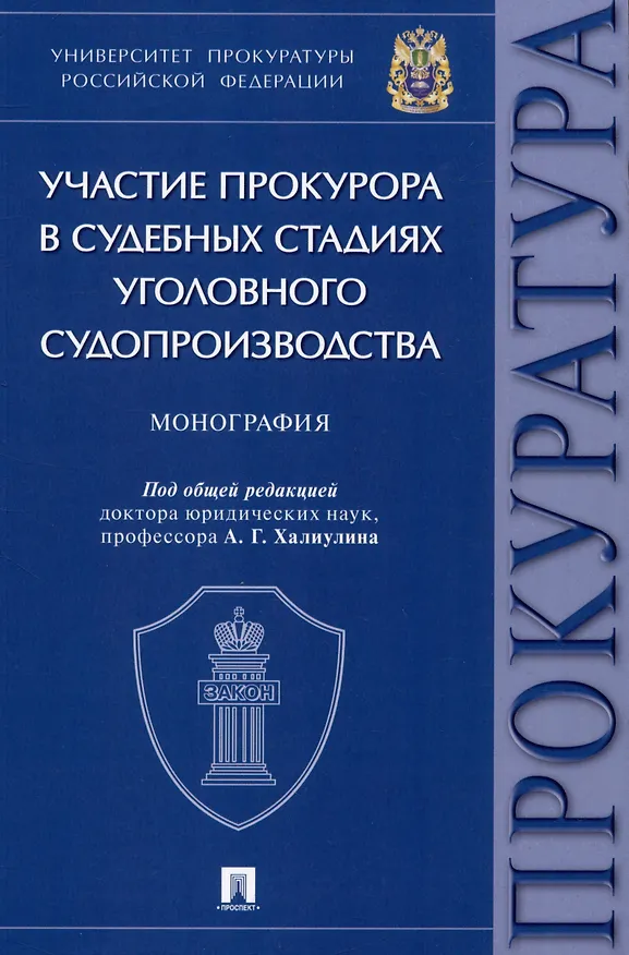 Монография, подготовленная в Университете прокуратуры Российской Федерации, посвящена современным проблемам участия прокурора в судебных стадиях уголовного судопроизводства.