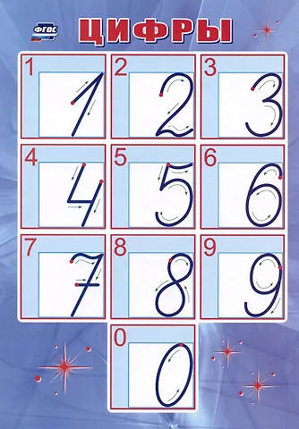 Плакат предназначен для освоения и закрепления образцов написания печатных и письменных цифр от 0 до 9. Использование плаката в образовательном процессе позволит обучающимся овладеть каллиграфическими навыками на уроках математики в самостоятельной деятельности, овладеть основными учебными навыками, сформировать важнейшую компетенцию личности школьника - умение учиться и стать успешным учеником, а педагогам эффективно и интересно провести занятия с детьми. Такой плакат легко разместить на рабочем столе ученика, также с ним удобно изучать цифры в домашних условиях. Плакат соответствует требованиям ФГОС НОО и применим ко всем действующим программам начального общего образования. Предназначен о