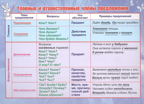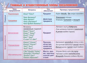 Учебный плакат "Главные и второстепенные члены предложения", А5